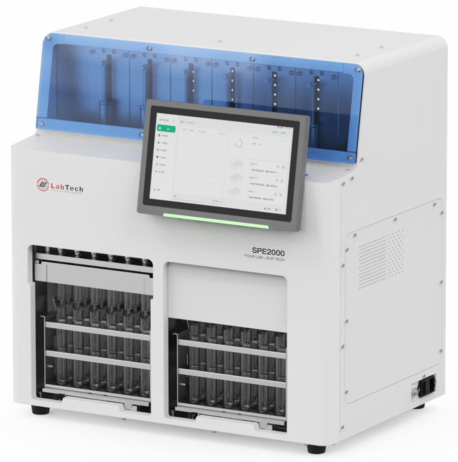 The SPE2000 Automatic Solid Phase Extractor is a high-throughput, multi-channel system designed for fully automated SPE cartridge processing. It features a large sample capacity, strong anti-clogging performance, and user-friendly operation.