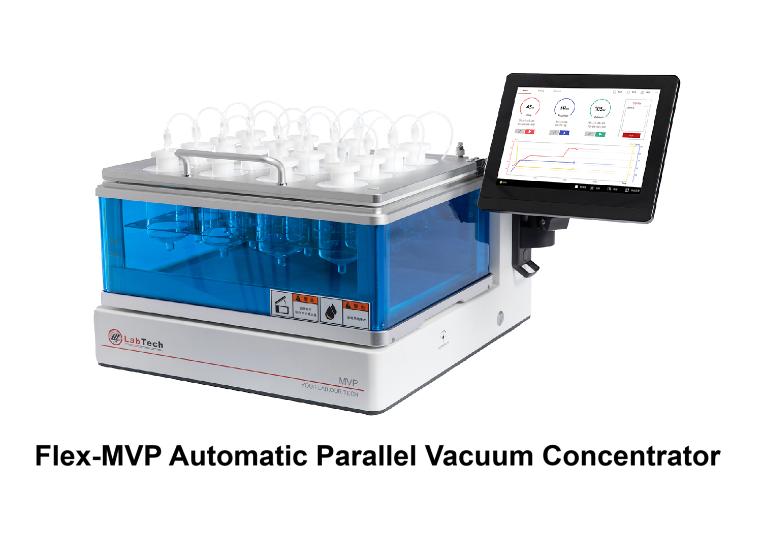 The Flex-MVP Automatic Parallel Vacuum Concentrator is a high-throughput, high-efficiency concentrator. Under heating, vacuum, and vortex oscillation conditions, it rapidly evaporates or concentrates multiple samples to a desired volume. Its combined overall and independent sealing design allows for both full-chamber sealing and individual sealing, enabling flexible addition or removal of concentration flasks without releasing the chamber pressure. This simplifies the concentration process, improves efficiency, and is widely applied in food, environmental, agricultural, and biological sample processing.