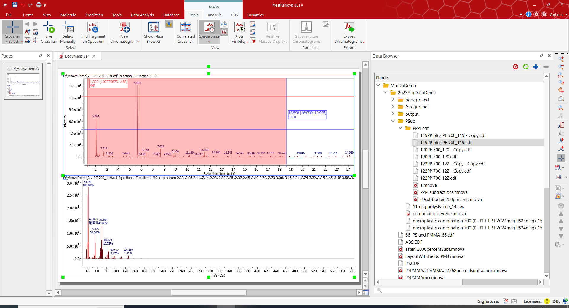 Analytical pyrolysis coupled to gas chromatography-mass spectrometry (Py-GC-MS) is a gold standard approach in polymer characterization by vaporizing complex samples with thermal energy into GC-MS for separation and detection. The resulting chromatograms, known as pyrograms, are often extremely complex and relying heavily on Py-GC-MS reference database to interpret. CDS Analytical and Mestrelab Research co-present a powerful mass spectral processing software: CDS Mnova Plugin, which uses Mestrelab's Mnova MSChrom and DB plugins, to perform the characterization of polymer samples through the search engine and Py-GC-MS database over 640 polymers. The unique subtraction feature empowers the user to complete multiple search from a polymer mixture.