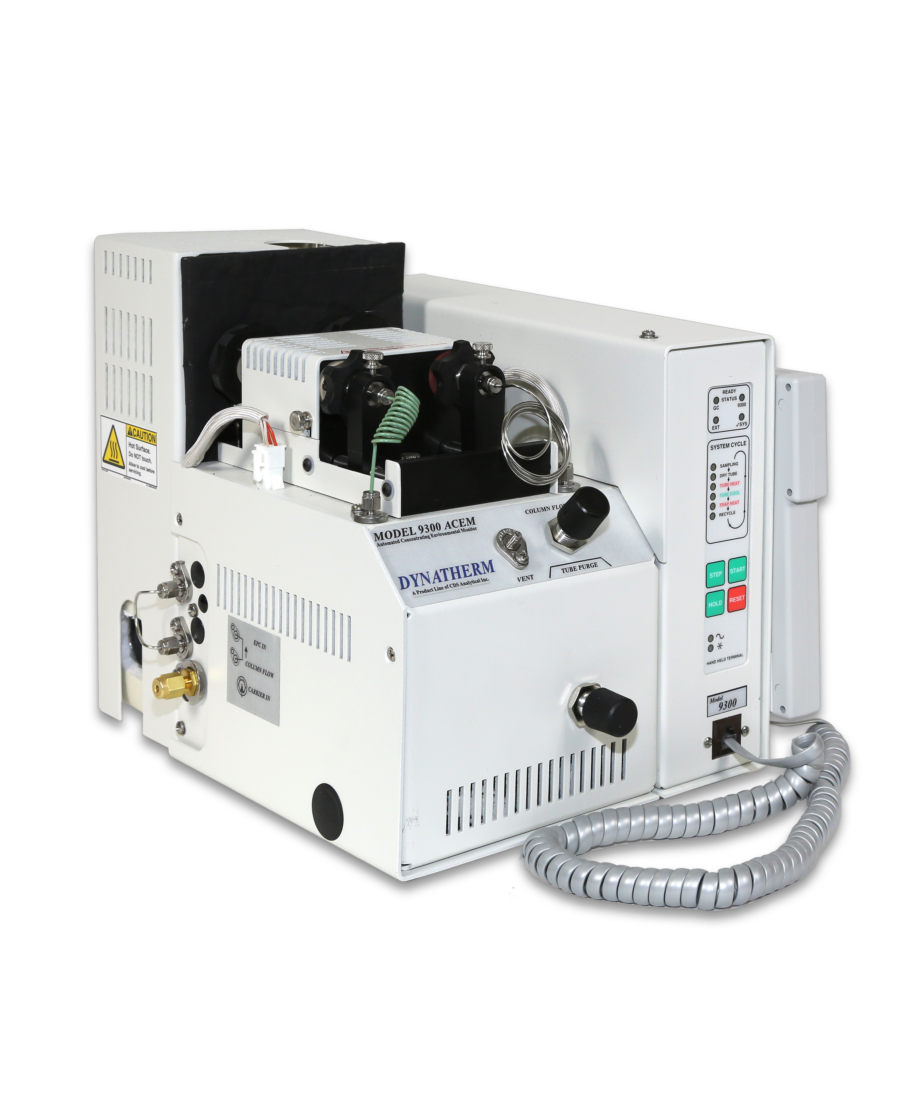 The CDS 9300 Thermal Desorption system is the base model for single tube desorption. It features a hand-held controller for system maintenance and direct communication. With the highest programmable valve temperature on the market (350°C), the 9300 can venture into applications where other systems can not perform, including VOCs, SVOCs, polar and nonpolar compounds. The two stage trapping and desorption process with Pre-desorb and Pre-heat feature eliminate the need of any Peltier cooling or liquid cryogen to improve the resolution for early eluting molecules.