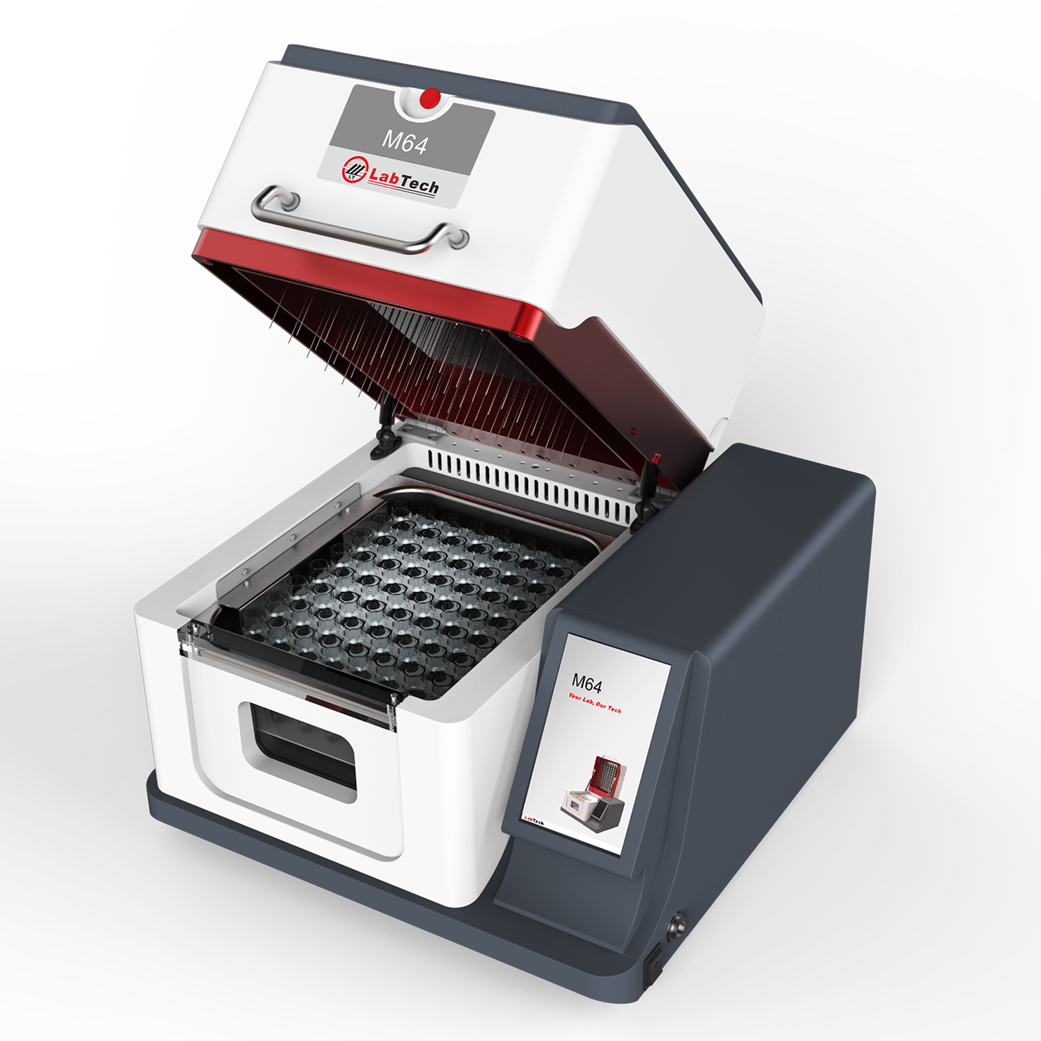 The M64 Automatic High Throughput Parallel Concentrator replaces manual methods with fully automated, unattended concentration, offering high efficiency and throughput.