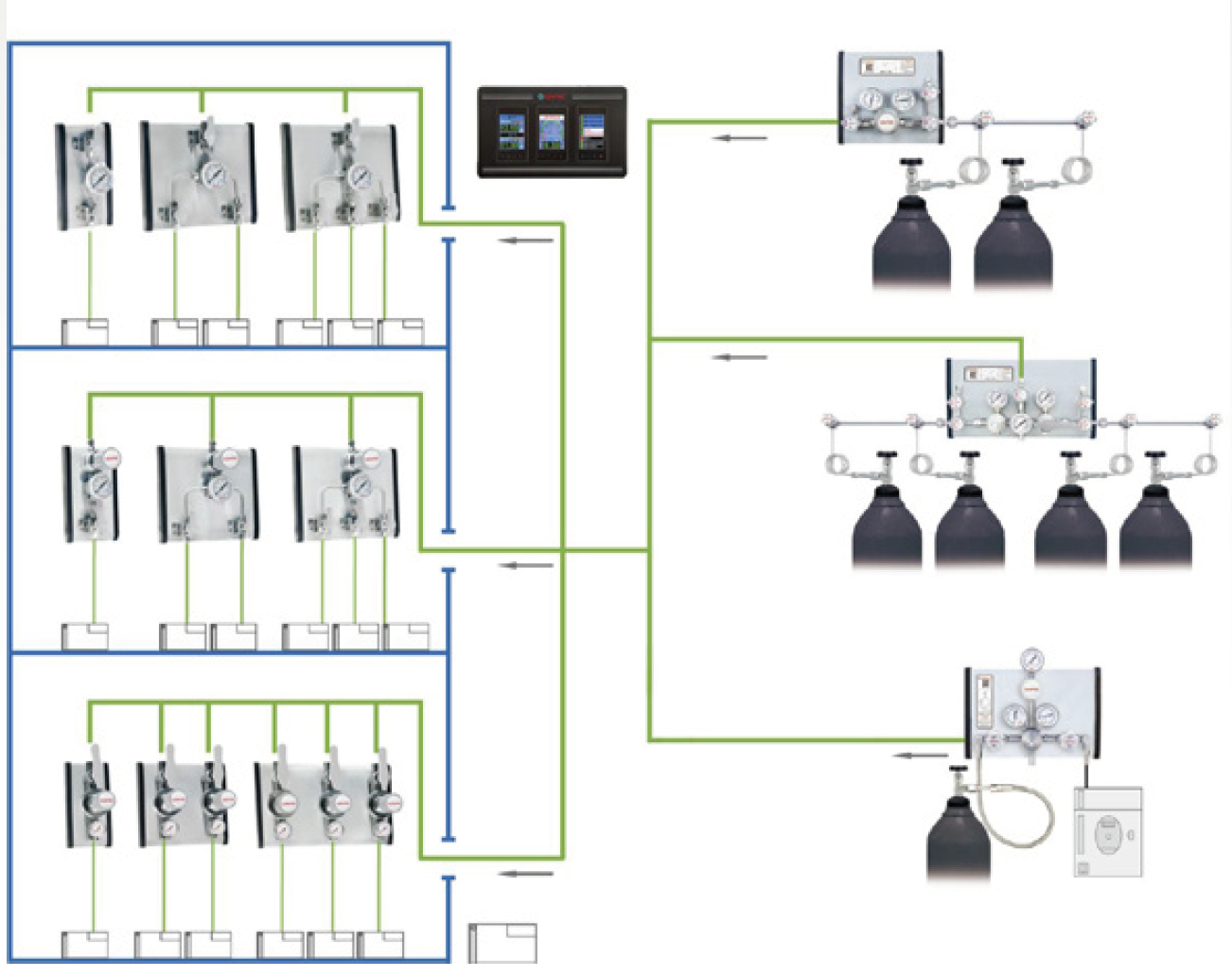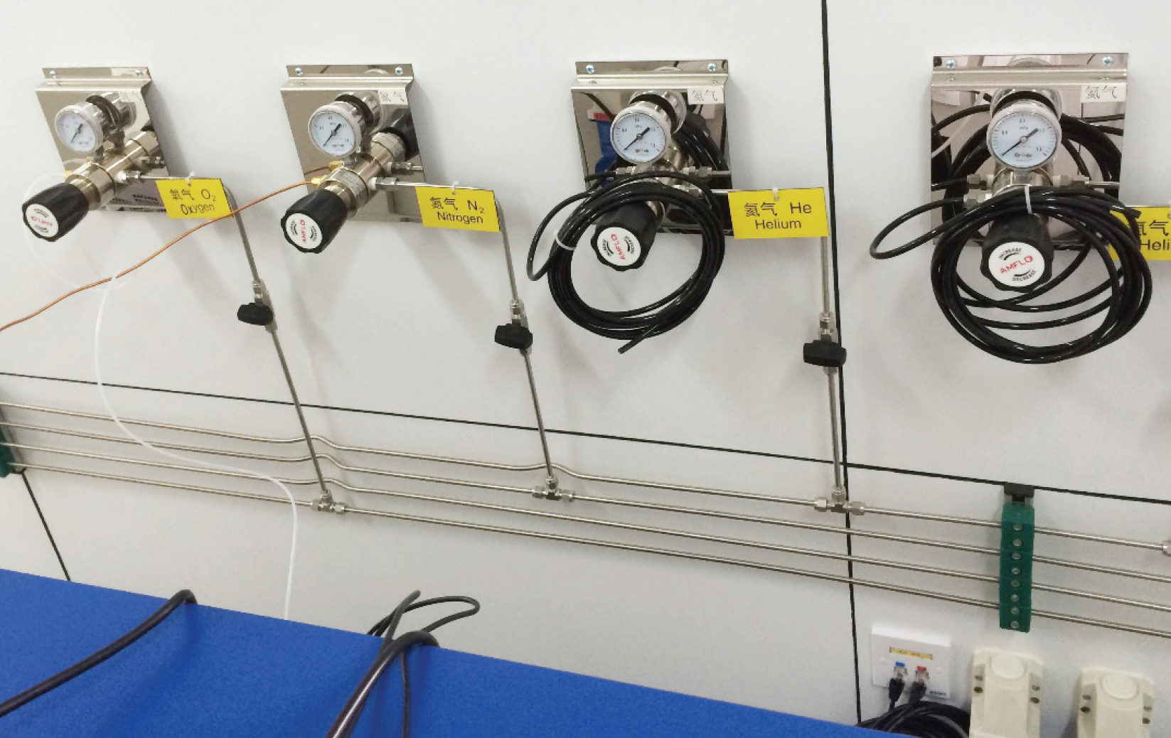 Laboratory gas sources are centralised and managed independently, with clear separation between hazardous, flammable, explosive, and inert gases. The gas supply room is equipped with continuous 24-hour intermittent ventilation and emergency ventilation systems to ensure safety and compliance.