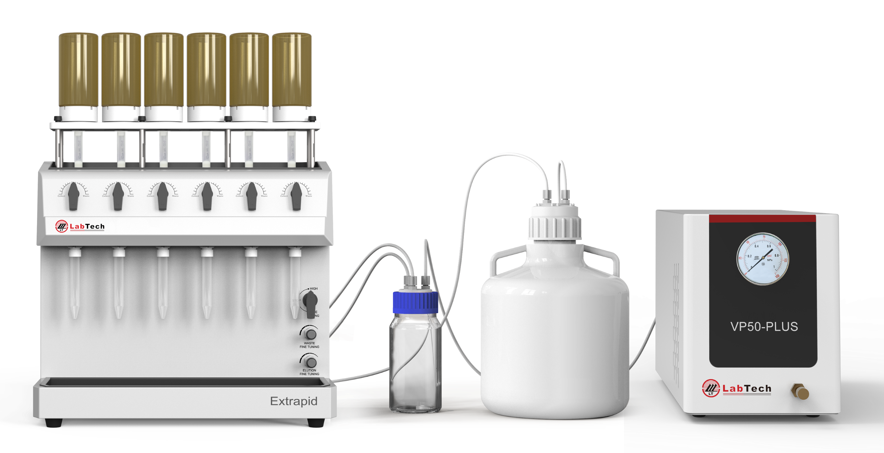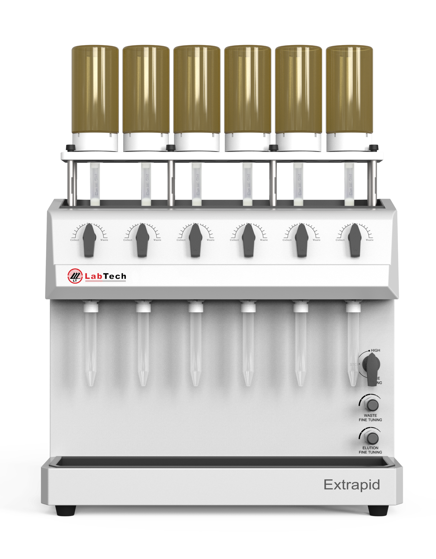 LabTech Extrapid Manual Cartridge-Disk SPE System organically combines both cartridge and disk extraction formats in a single instrument, accommodating both large and small sample volumes and supporting a wider range of methods.