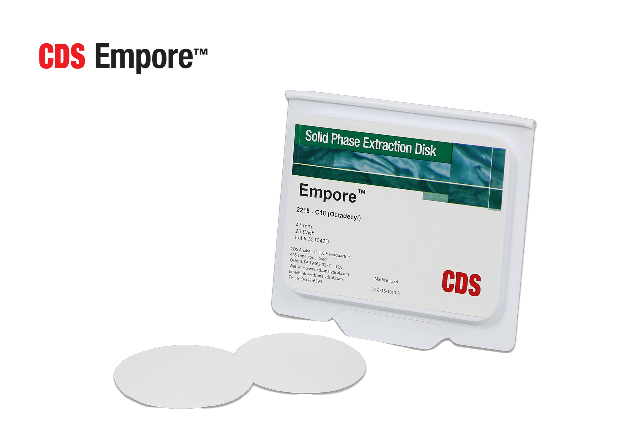 CDS Empore 2215 and 2315 Environmental C18 Disks utilize C18-HD bonded silica with a 12 µm particle size for strong non-polar analyte extraction. These solid phase extraction (SPE) disks offer excellent retention capacity and high recovery efficiency. End-capped to minimize polar interactions, they are recommended for a wide range of EPA Methods, including 506, 508.1, 525.2, 550.1, 608, 1613B, and others.