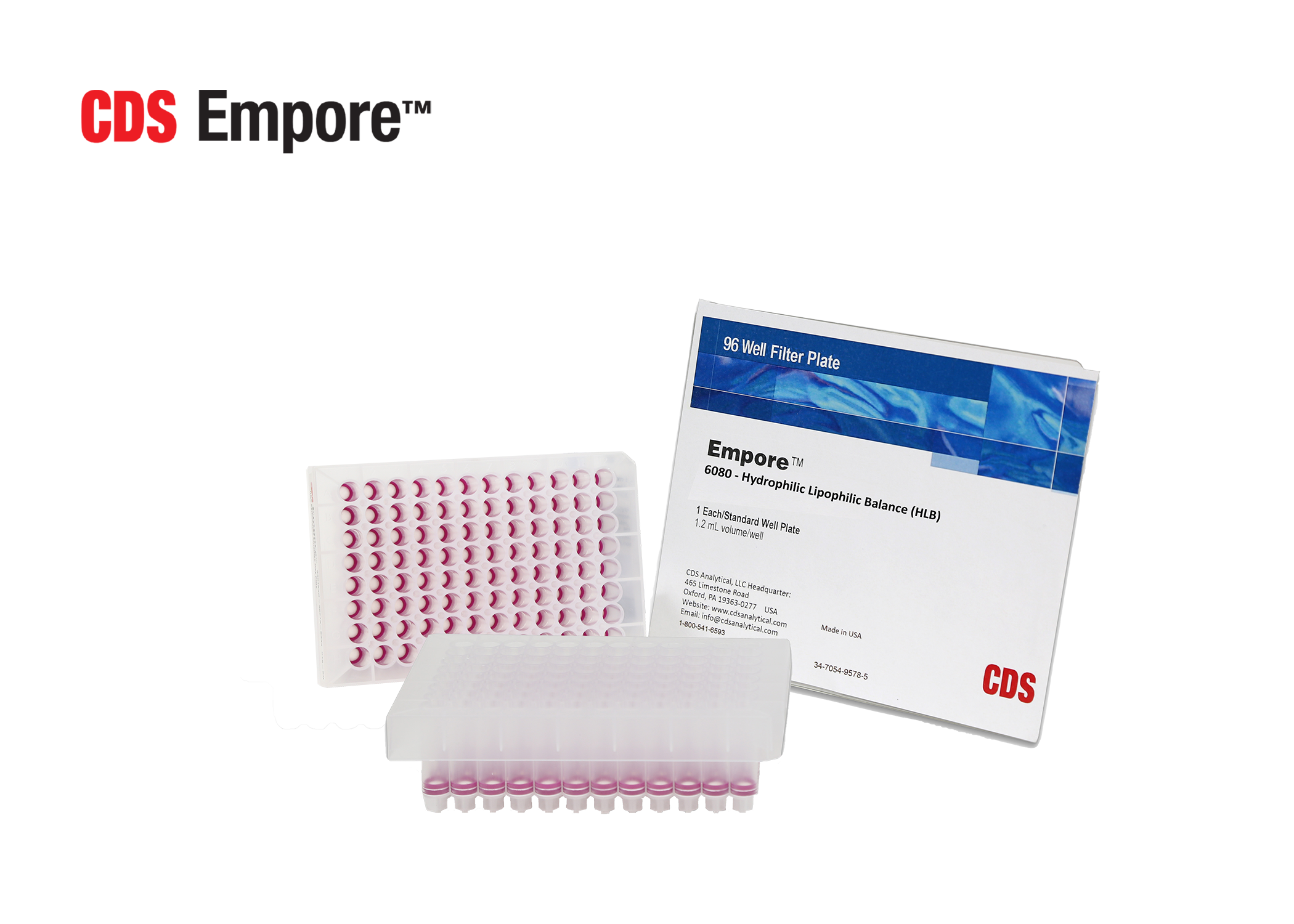 CDS Empore 6080/6380: 96-Well Plates, hydrophilic lipophilic balance (HLB), 50um particle size. 1.2ml/well. 1 plate/EA. pH range 1-14.