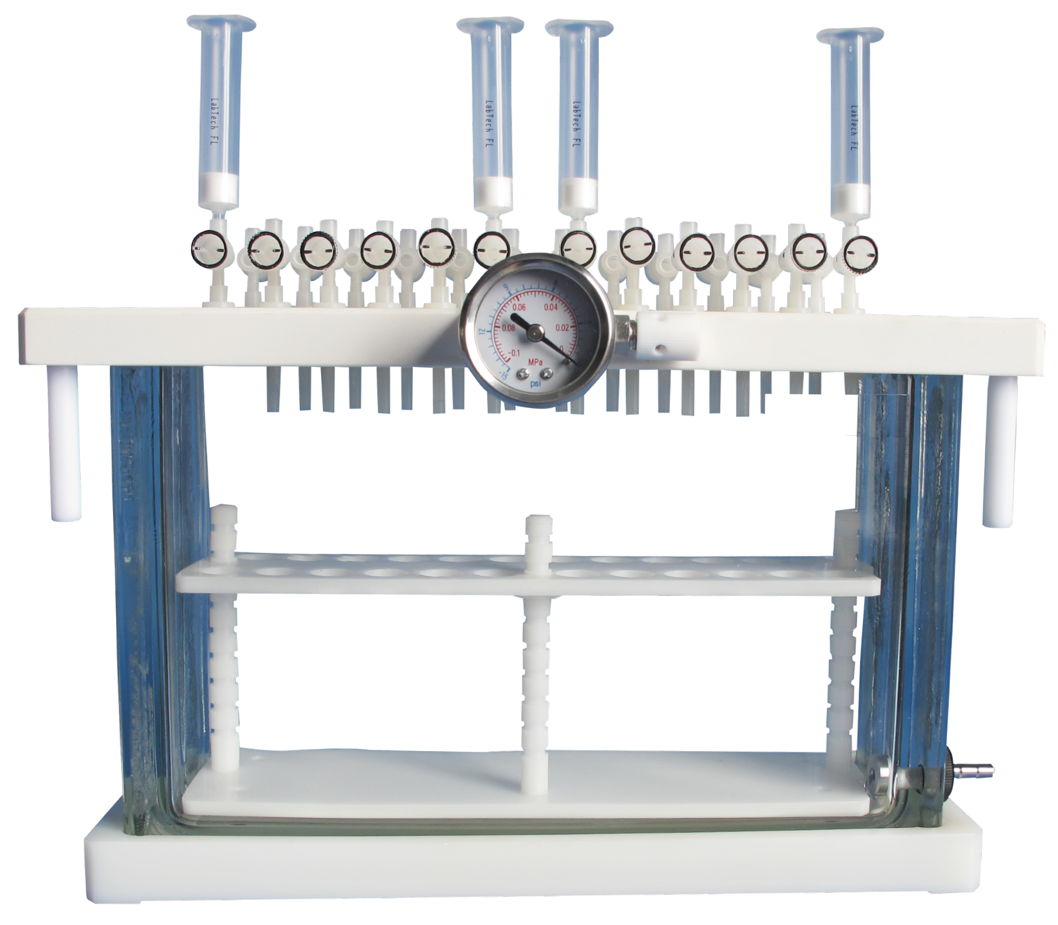 W-SPE Manual Vacuum Manifold is designed for the extraction and enrichment of organic compounds. It is compatible with standard-sized SPE cartridges, features independent valves, is durable, and is easy to operate. Available in 12-position and 24-position options.